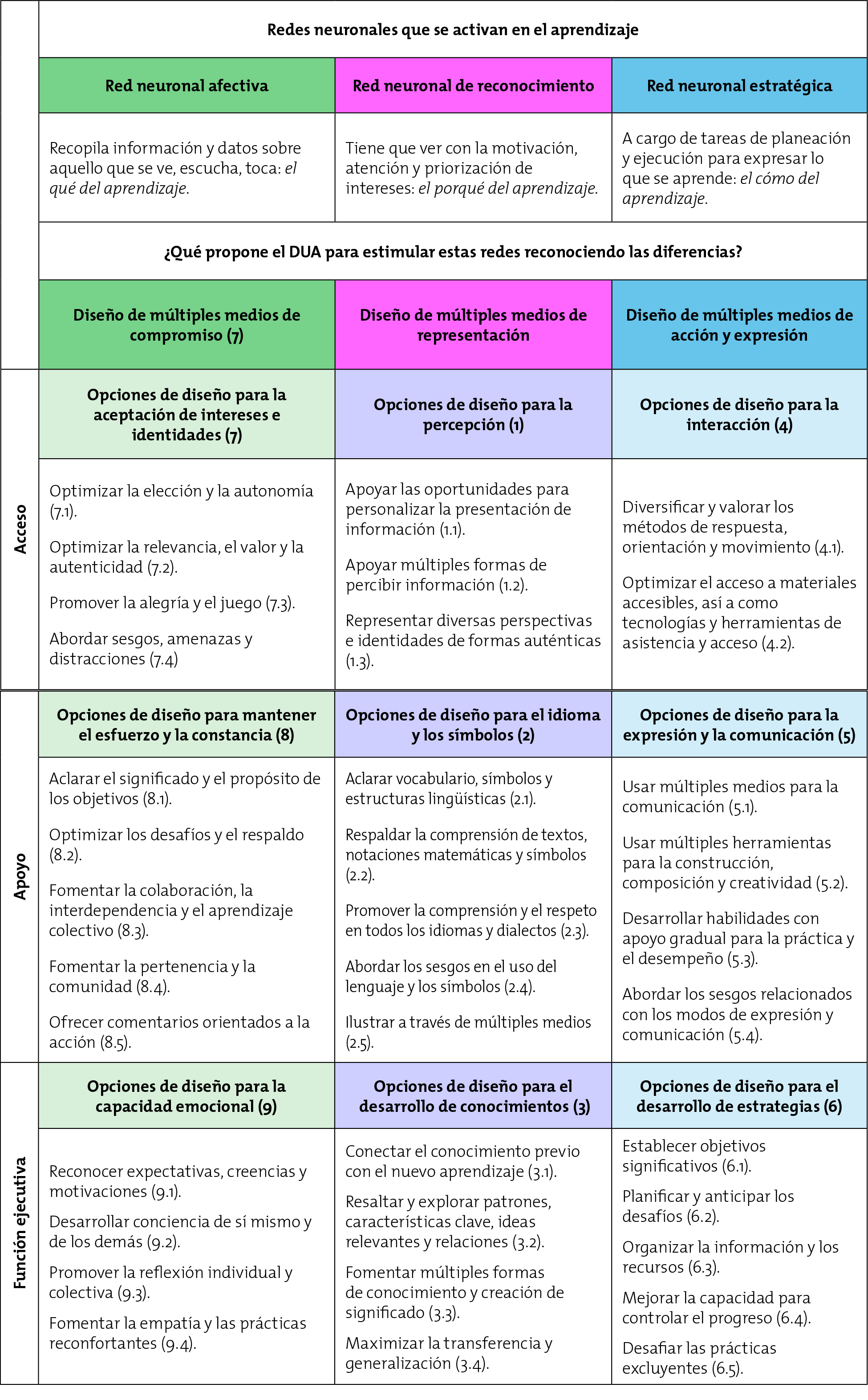 Fuente: Adaptado de CAST (2024), UDL Guidelines 3.0.