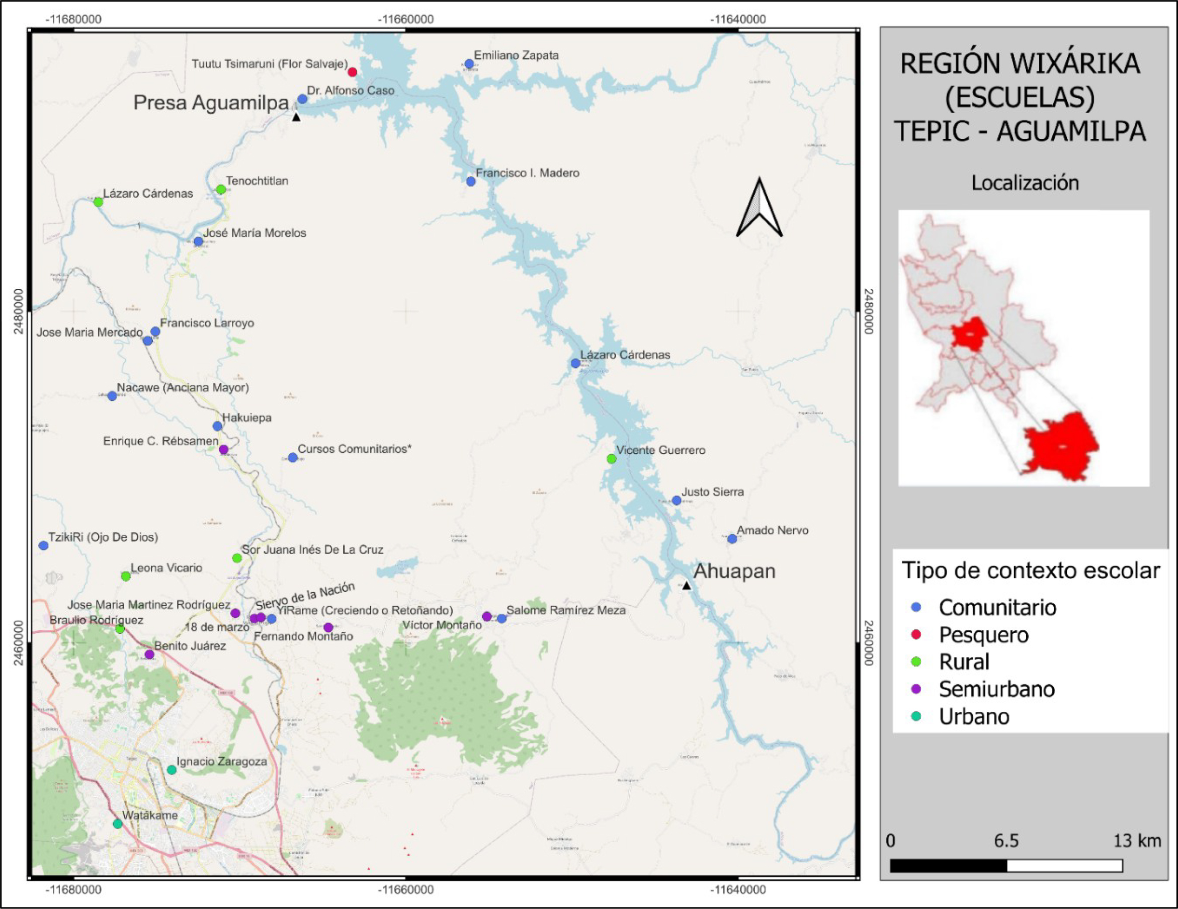 El corredor Tepic-Aguamilpa en Nayarit es una región intercultural con la presencia de pueblos y comunidades wixaritari donde la acción educativa en primaria enfrenta muy diversos contextos sociales, culturales y lingüísticos. Las relaciones interétnicas en esta región, como en toda Nuestra América, son estructuralmente desiguales y conflictivas, y la región enfrenta décadas de indigenismo educativo como política de integración y asimilación de lo indígena a lo mestizo y ha sufrido los impactos socioambientales de grandes obras, como es la presa hidroeléctrica de Aguamilpa. La identidad wixárika de esta región está incorporada en una diversidad de comunidades donde importa mucho el tamaño de la población bilingüe y el contexto socioeconómico que viven las escuelas.