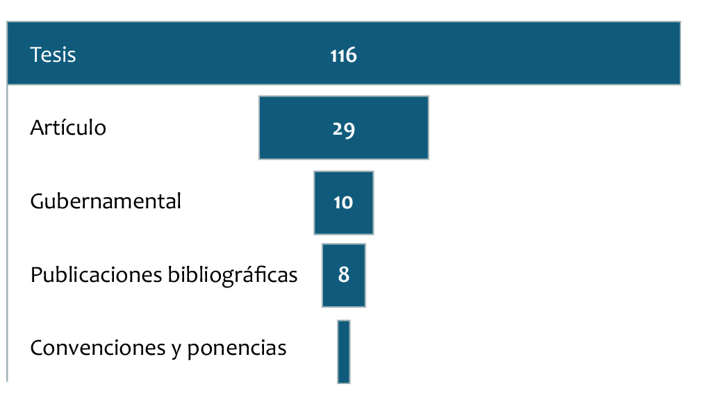 Así mismo, la predominancia de tesis universitarias realizadas en Cundinamarca y Antioquia genera un sesgo territorial que, si bien se debe en gran medida a las condiciones estructurales de tipo centralista que vive Colombia, también puede ser considerado como una limitación analítica que acota el alcance nacional pretendido por la revisión. Además, la técnica manual implementada en la matriz para el análisis de los recursos bibliográficos puede limitar la extensión de la información extraída e impactar en el alcance de las conclusiones a nivel nacional.