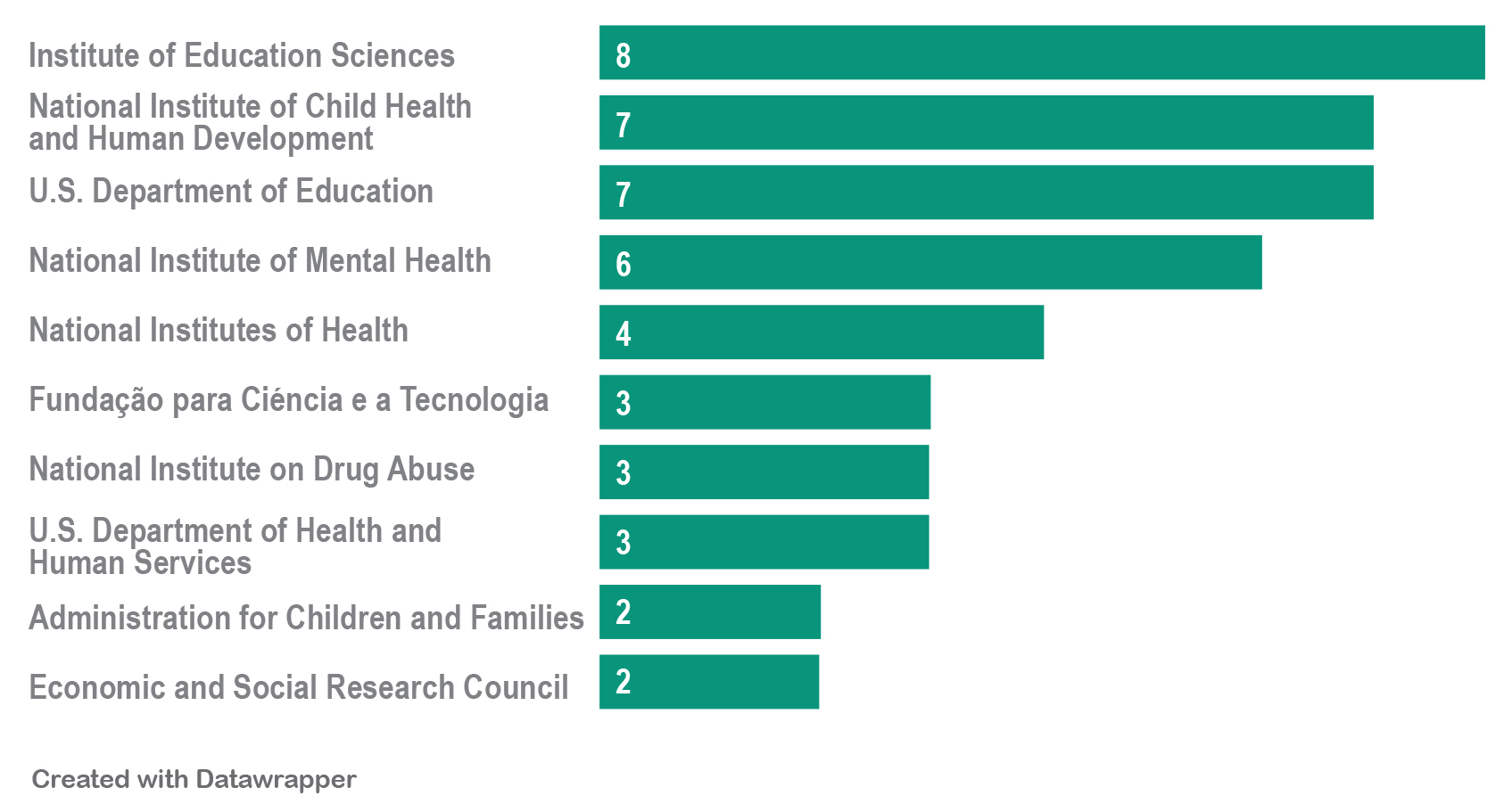 La Figura 9 refleja el panorama de apoyo financiero, con entidades como el Institute of Education Sciences y el National Institute of Child Health and Human Development, que proporcionan recursos significativos. Esto puede servir como una guía para investigadores en busca de financiamiento y también resalta la prioridad que estas instituciones otorgan a la investigación en la educación temprana y el desarrollo socioemocional.