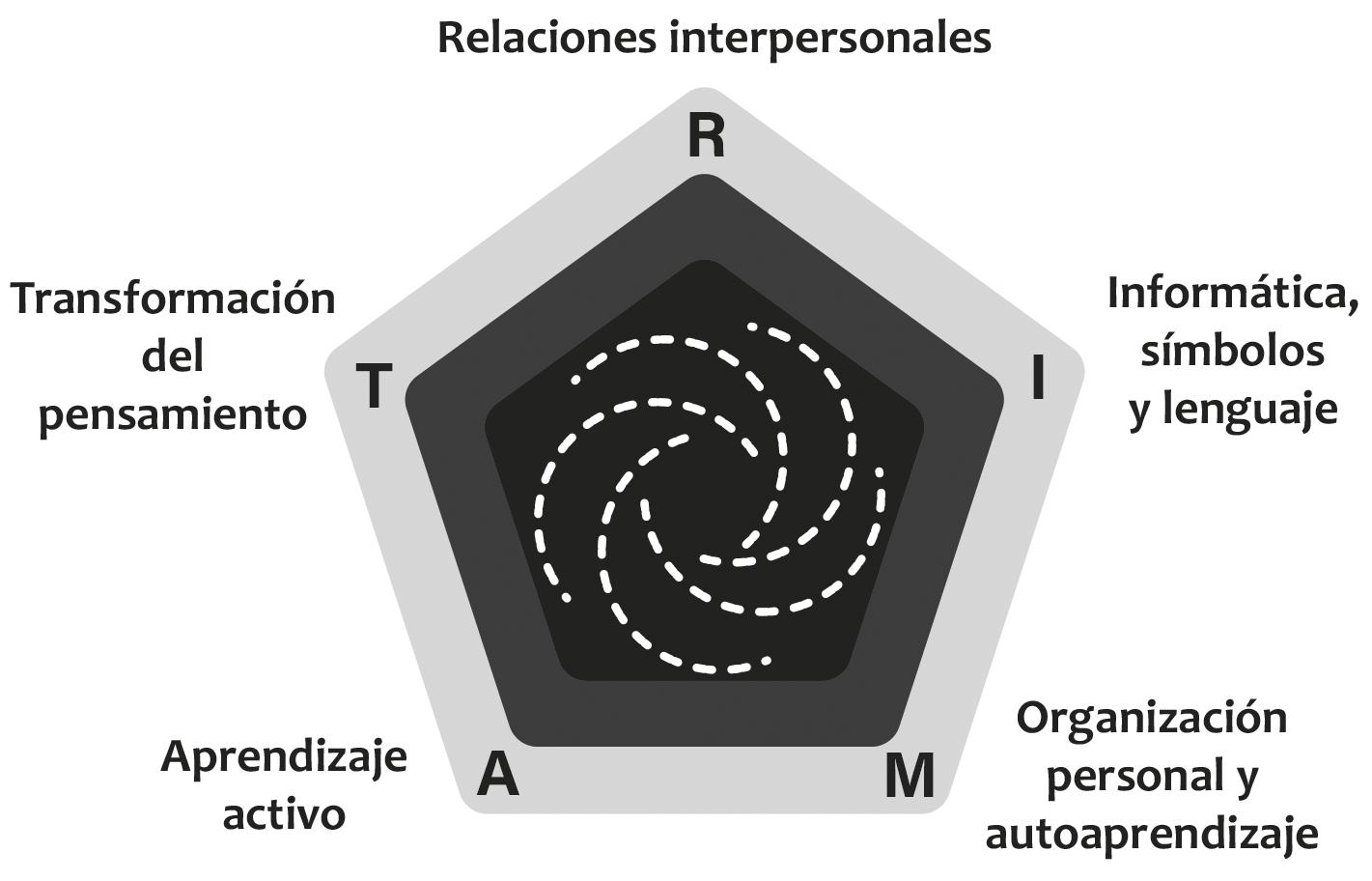 El modelo ATRIO (Figura 2), como eje del aprendizaje para todos, describe un conjunto cohesivo de capacidades clave: Aprendizaje activo (A), Transformación del pensamiento (T), Relaciones interpersonales (R), uso de Informática, símbolos y lenguaje (I) y Organización personal y autoaprendizaje sostenible (O). Los docentes pueden fomentar estas capacidades en el aula, utilizando este lenguaje común también con las familias, lo que favorece una comprensión compartida de las necesidades de todos los estudiantes, incluidos aquellos con discapacidad o dificultades de aprendizaje.